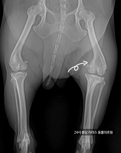- 무릎 쪽을 만지면 민감하게 반응하거나 움찔함